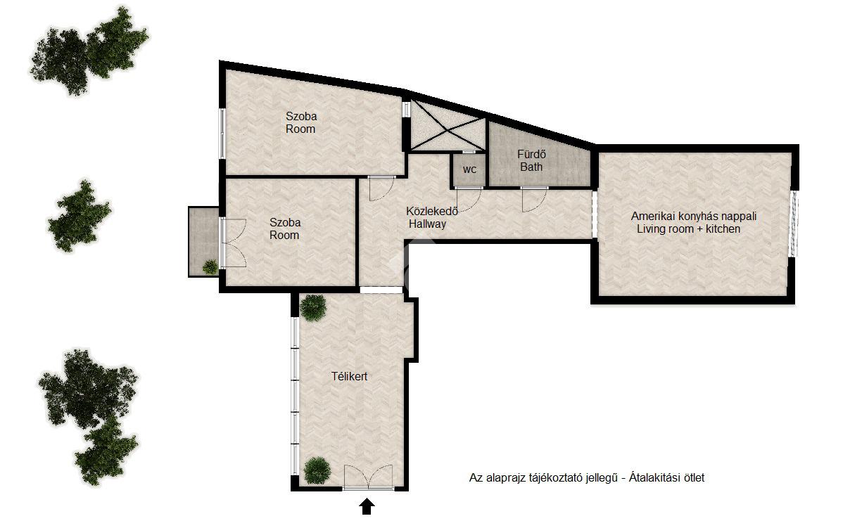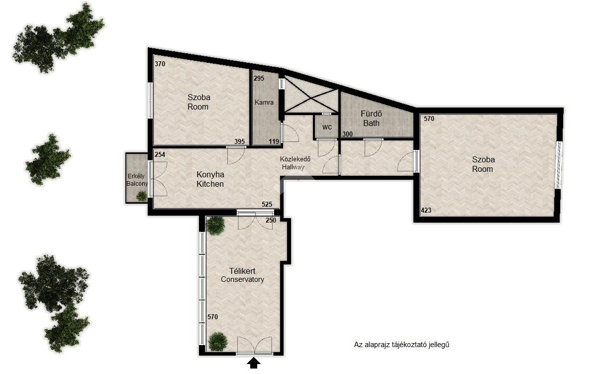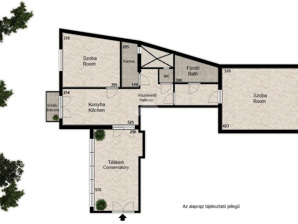 Már az előtérben elvarázsol a 14 nm-es, polgári bájjal teli télikert, amely zöldre néző üvegfelületeivel igazi nyugalomsziget.