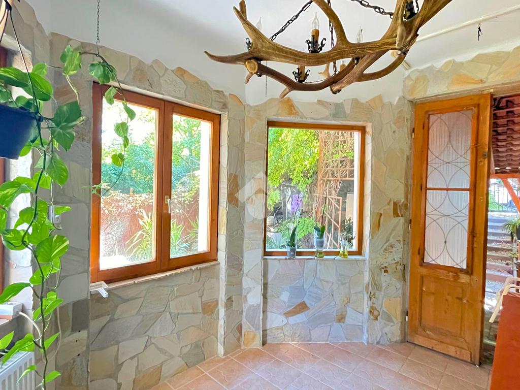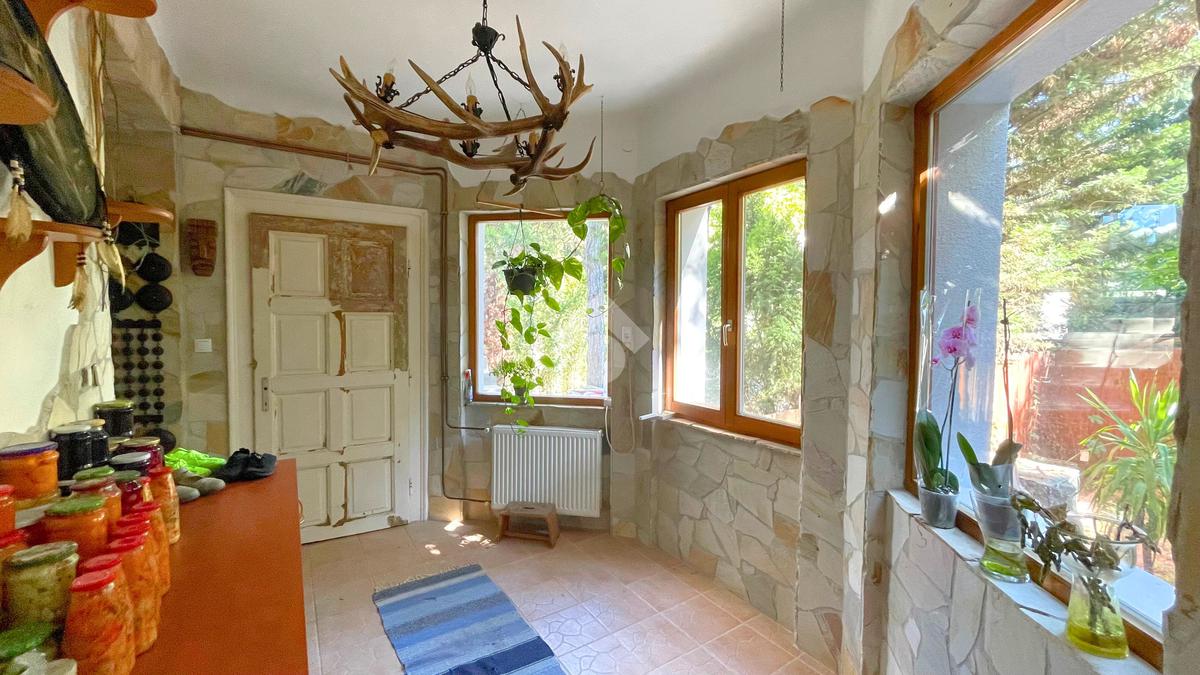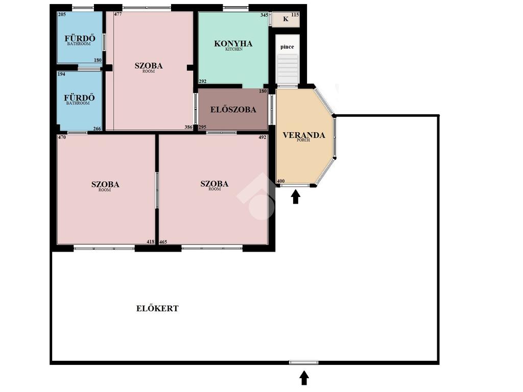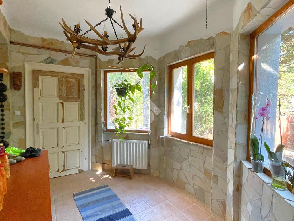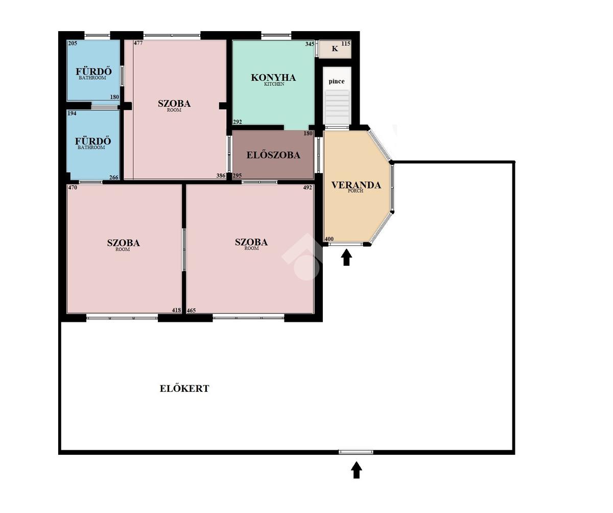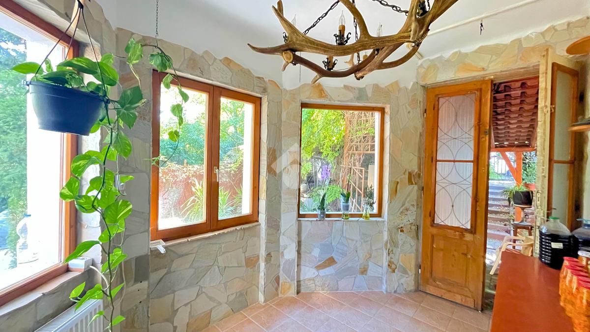 Az ingatlant a közvetlen utcafronti, saját használatú kertből közelíthetjük meg. A bejárati ajtón belépve egy 10 nm-es nagy üvegfelülettel rendelkező, napos veranda fogad minket. Innen nyílik a több helységet is összekötő előszoba.