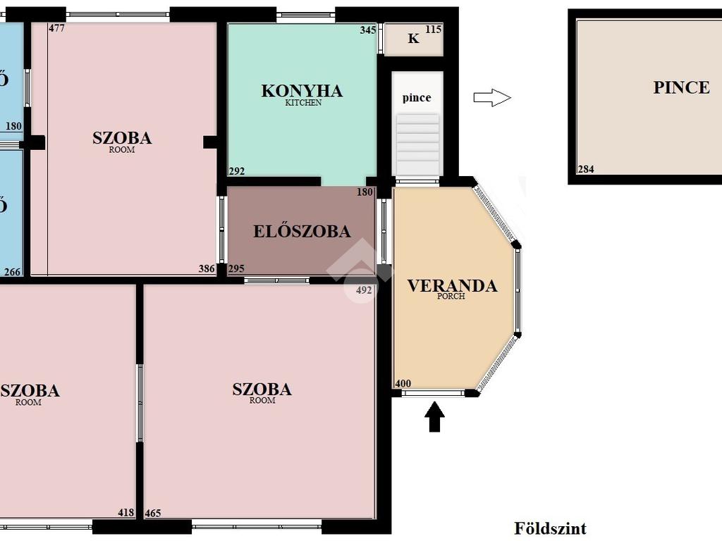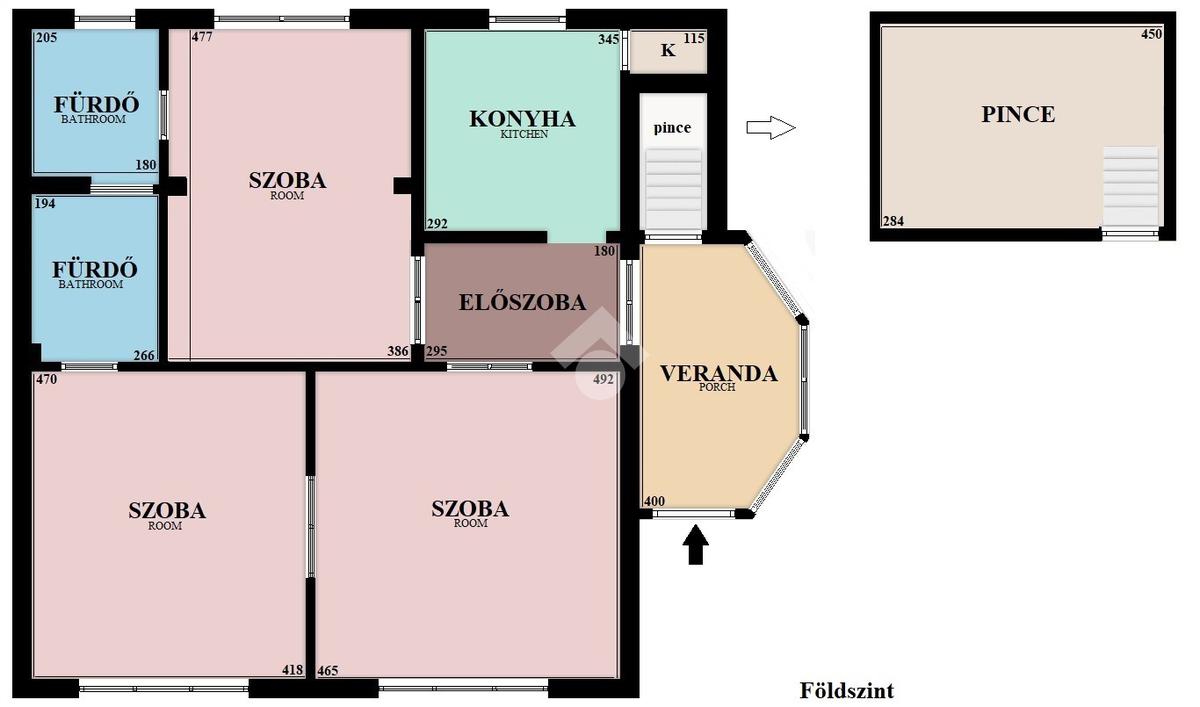 A verandán keresztül tudjuk megközelíteni a tárolást megkönnyítő 13 nm-es, száraz, betonozott privát pincét, mely akár mosókonyhává is alakítható.