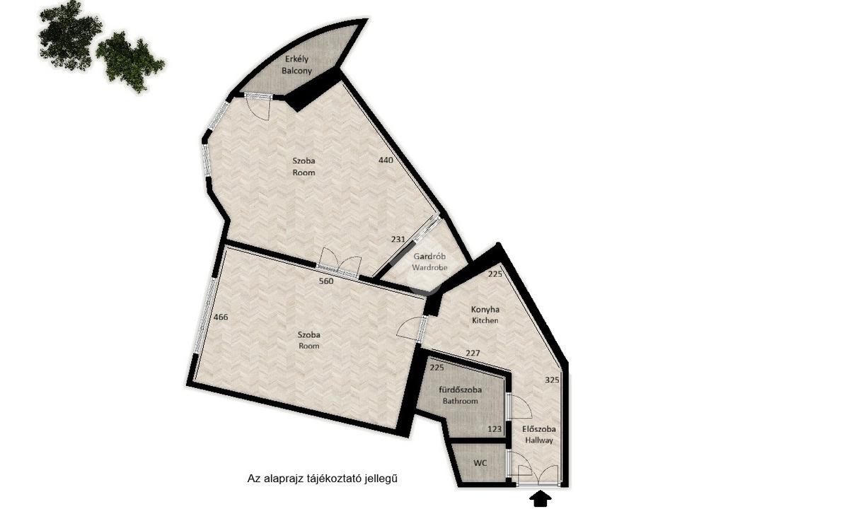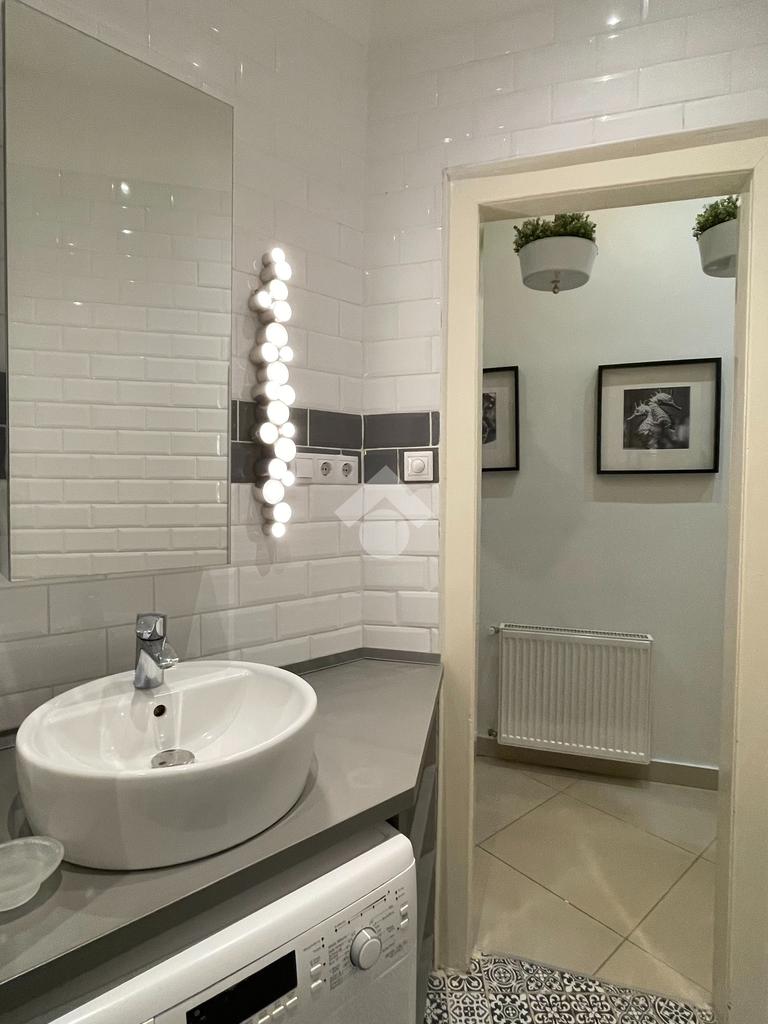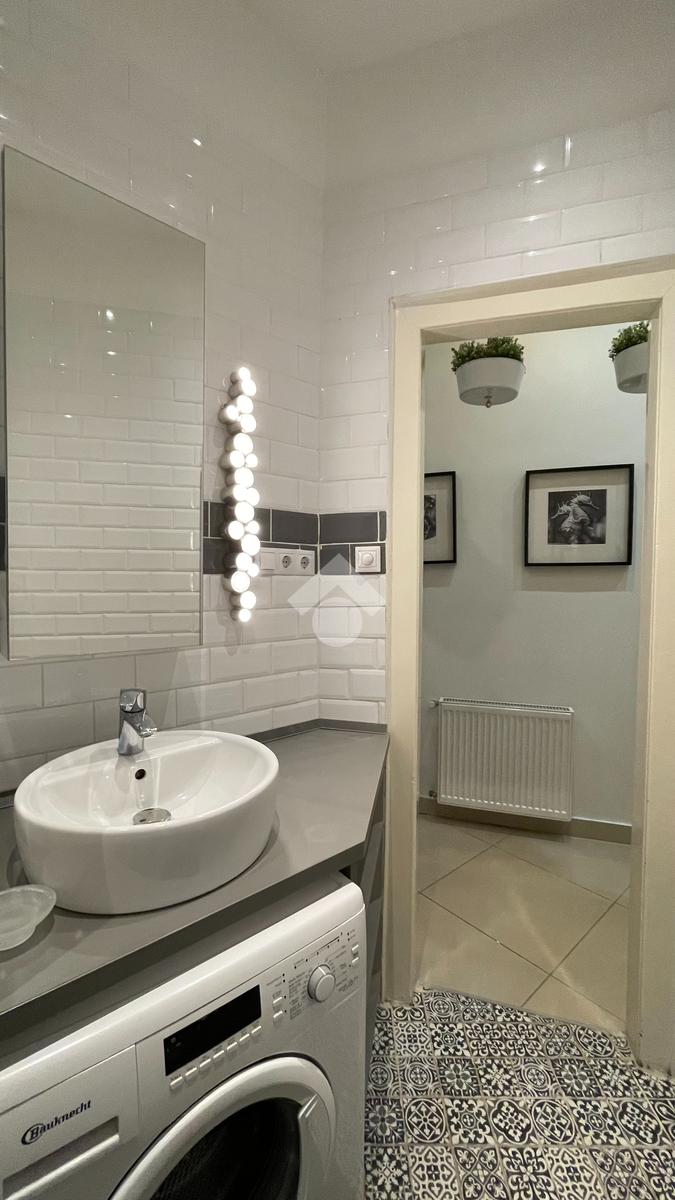 A lakásba lépve egy modern előszobába jutunk. Innen közelíthetjük meg az épített zuhannyal, mosdóval, törölközőszárítóval és mosógéppel szerelt fürdőszobát továbbá a kézmosóval is rendelkező, külön wc-t.