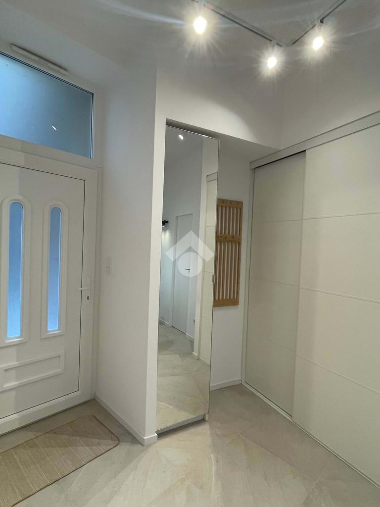 Az előszobában kialakításra került két tároló szekrény, melyben kényelmesen elhelyezhetőek a kabátok és a cipők is.