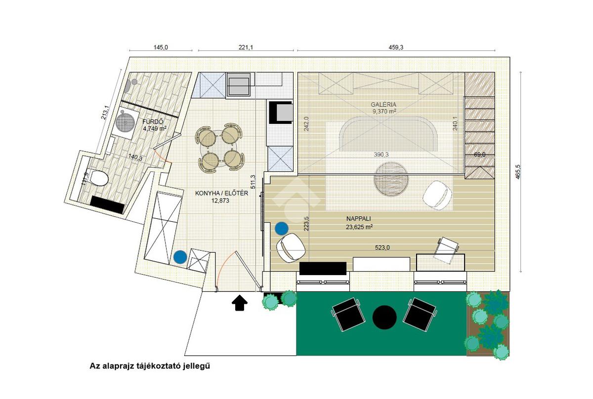 Ugyancsak a vételár részét képezi a teljes bútorzat, a beépített mosógép és a szárítógép is.
